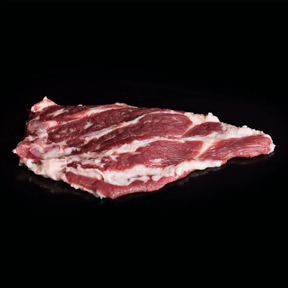 Un corte jugoso y sabroso, perfecto para asar o a la parrilla. Carne muy jugosa y tierna. Se extrae de la parte posterior del cabecero.